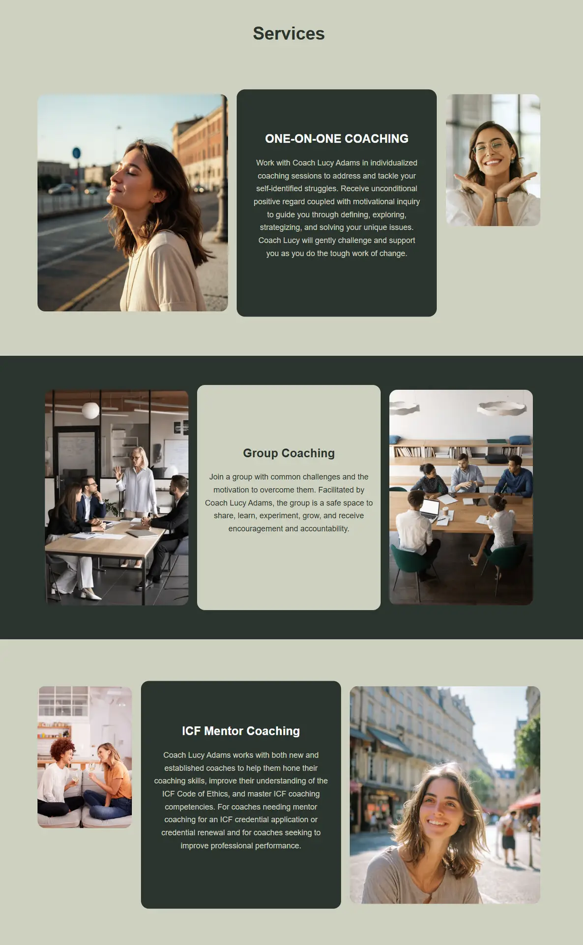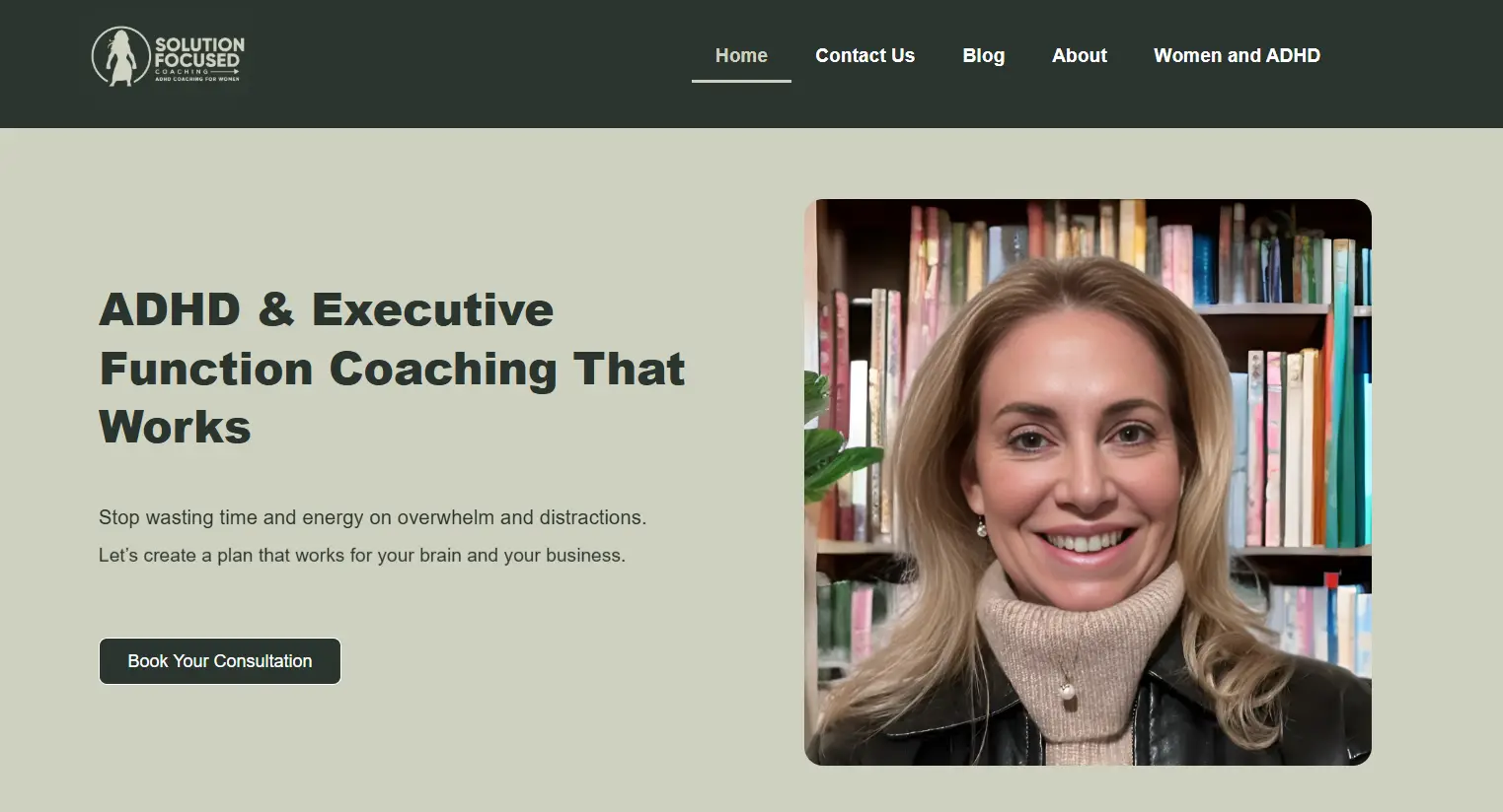 The initial impression of her website was impacted by a plain layout, basic imagery, and a standard serif font. The absence of a visually engaging or trust building hero image may unintentionally convey a lack of professionalism.